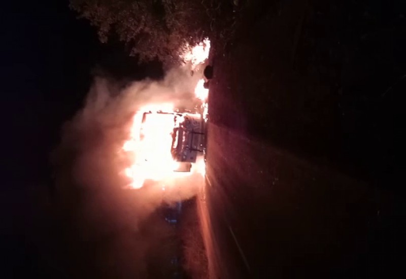 राजकोट से भिंड जा रही बस में मध्य रात्रि में लगी भीषण आग