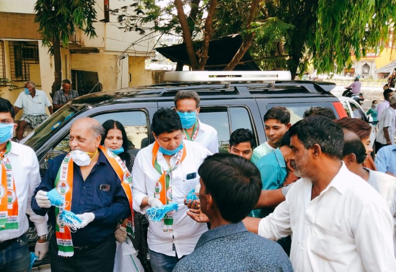 मुंबई: विश्वभर के लिये मनुष्य का दुश्मन बन चुके कोरोना वायरस के मद्देनजर महाराष्ट्र सहित देश भर में कोहराम मचा हुआ है। इस कोहराम से बचाव के लिये मुंबई के कांग्रेसी नेता लोगों में मास्क बांट रहें हैं।