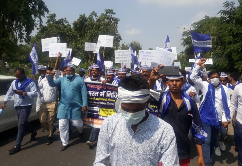 नॉएडा | गौतम बुध नगर में आजाद समाज पार्टी और भीम आर्मी ने सरकारी क्षेत्रों के निजीकरण पर रोक, निजी क्षेत्र में आरक्षण खत्म करना , युवाओं को रोजगार और किसान विरोधी विधेयकों को रद्द किए जाने के संदर्भ में जिलाधिकारी के माध्यम से महामहिम राष्ट्रपति को ज्ञापन सौंपा ! आजाद समाज पार्टी के राष्ट्रीय कोर कमेटी सदस्य और आगरा बनारस मध्य प्रदेश प्रभारी एडवोकेट रविंद्र भाटी ने कहा वर्तमान केंद्र सरकार कल्याणकारी राज्य की अवधारणा को छोड़कर जातिवादी एवं पूंजीवादी व्यवस्था को देश पर थोप रही है !